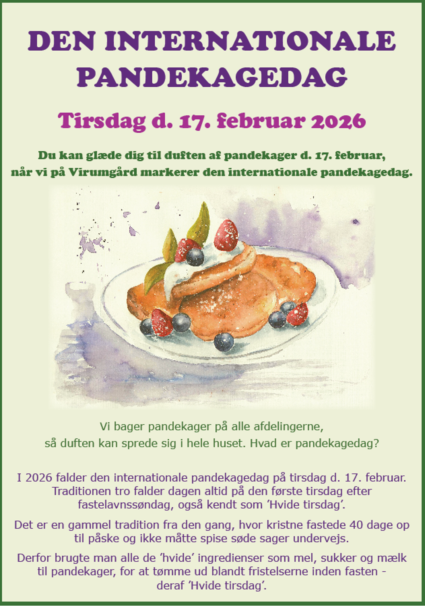 Du kan glæde dig til duften af pandekager, når vi på Virumgård markerer den internationale pandekagedag.