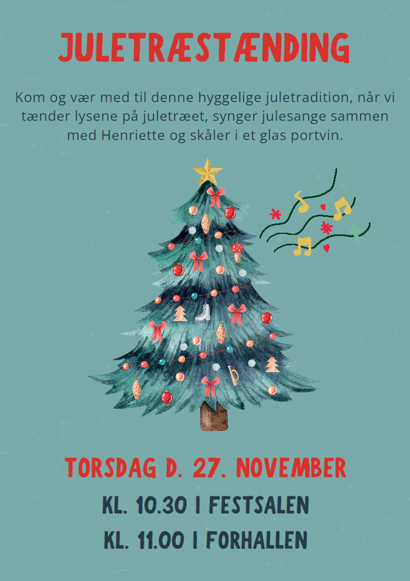 Kom og vær med til denne hyggelige juletradition, når vi tænder lysene på juletræet, synger julesange sammen med Henriette og skåler i et glas portvin.